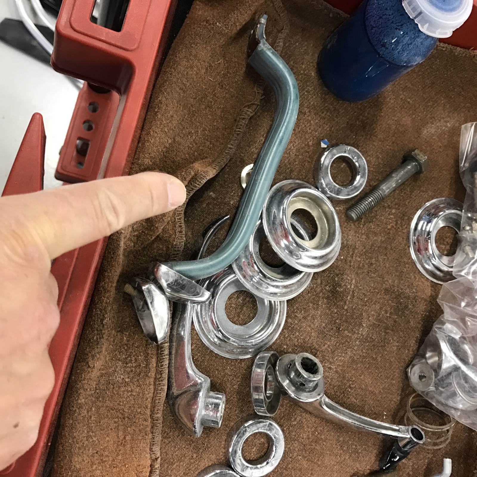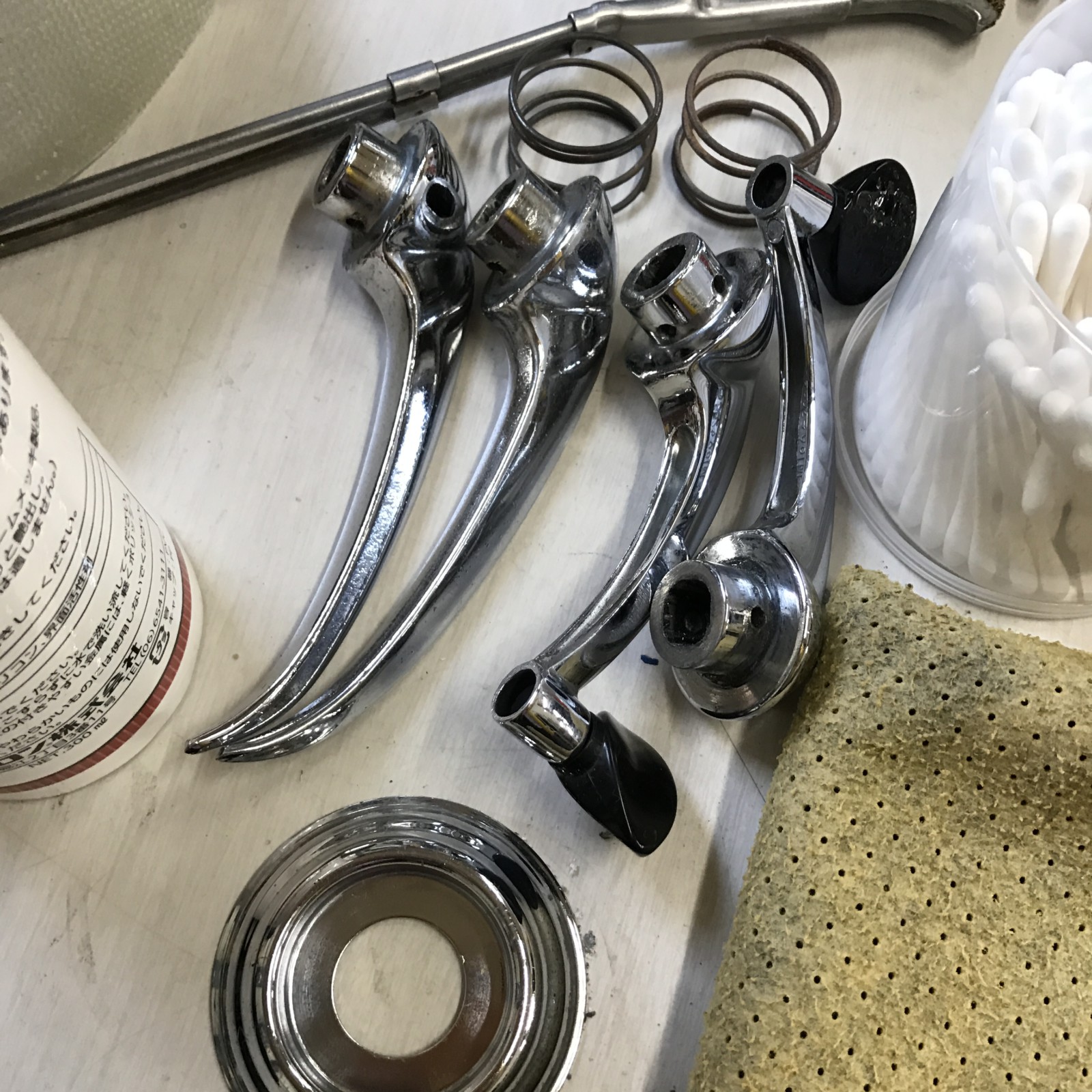部品類を磨きだしまが青いドア取っ手なんで