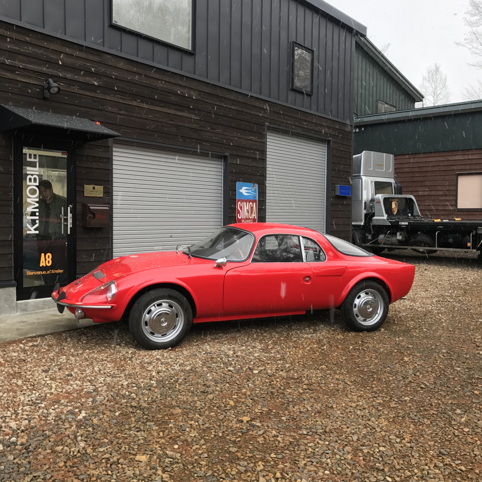 丁度、雪が降って来ました。