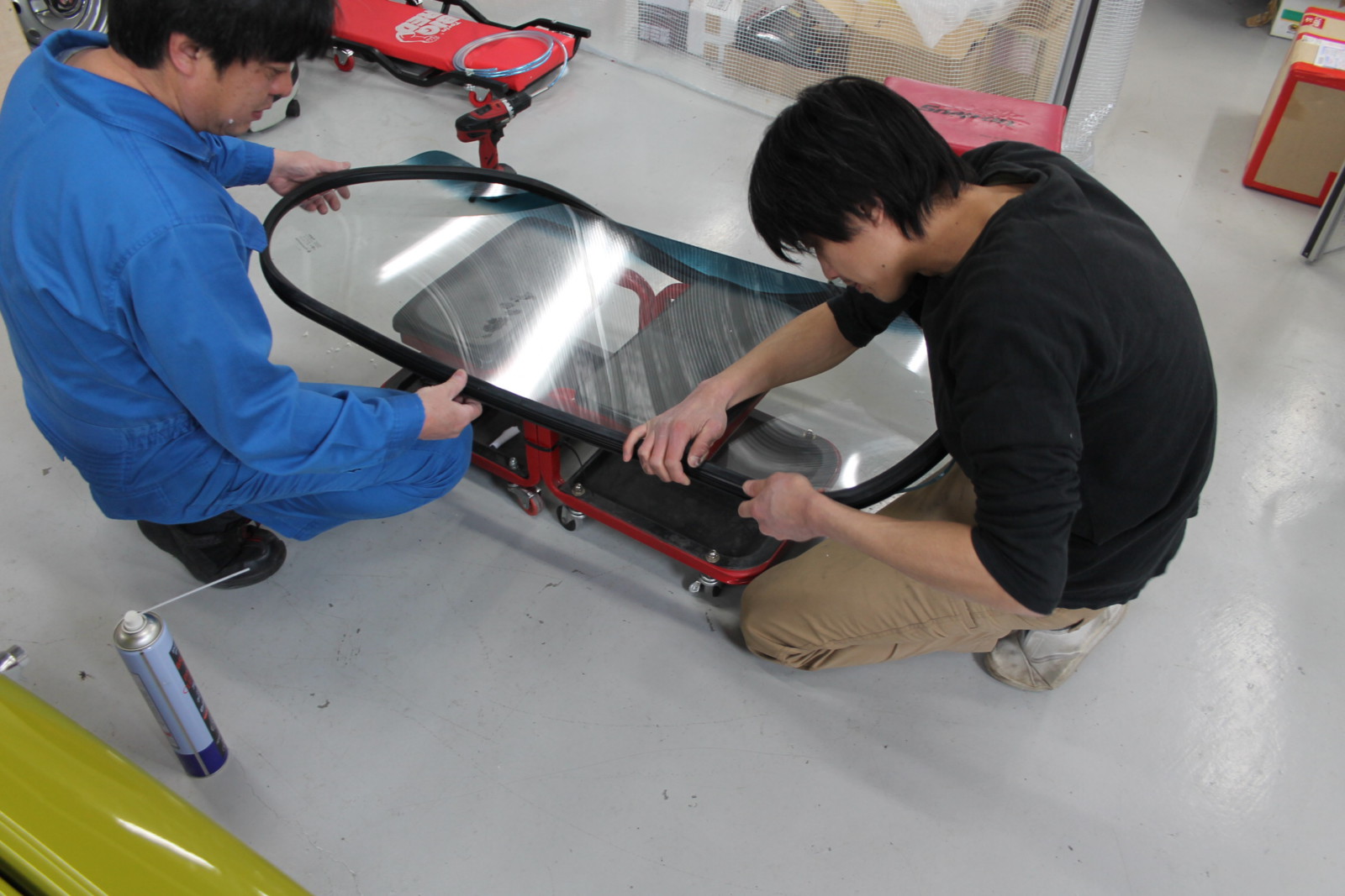 ラリー2はフロントウィンドウを交換です。