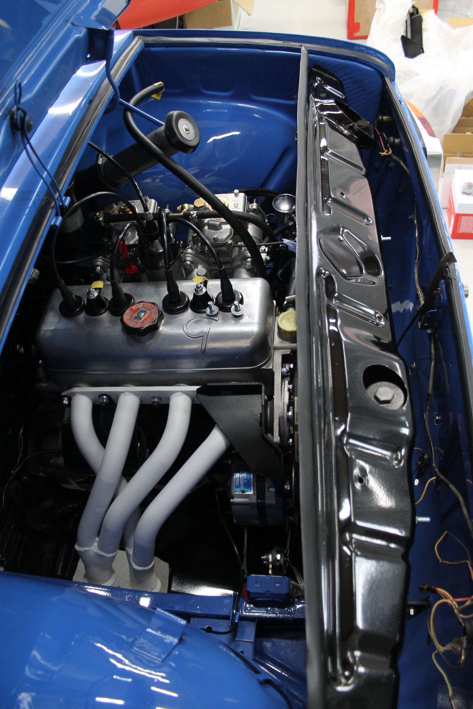 新品のモールが硬くて入れるのが大変だったようです(青く見えるのは養生です)