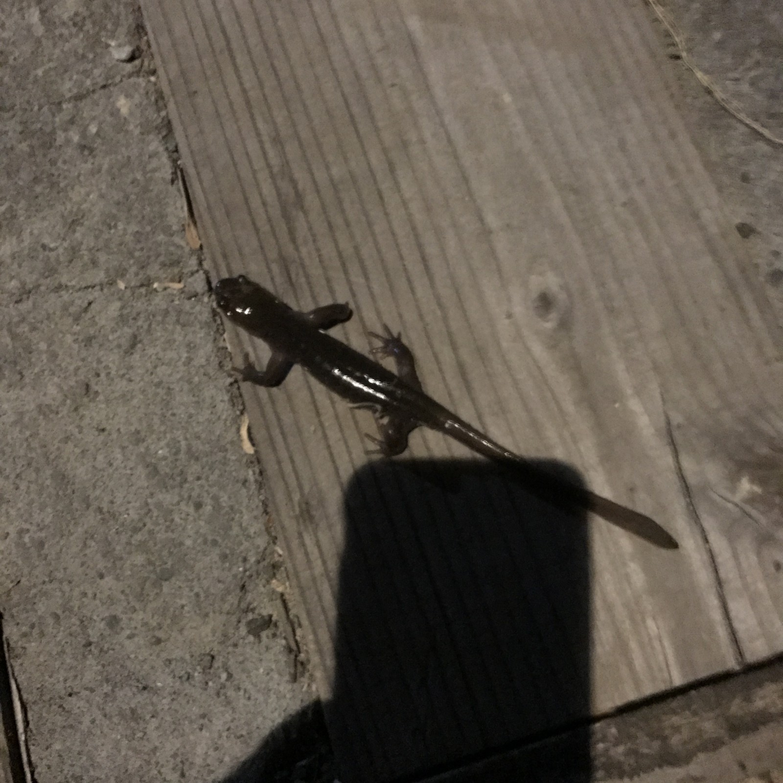 昨夜、玄関先に何やら黒いヤツが!なんと山椒魚です。