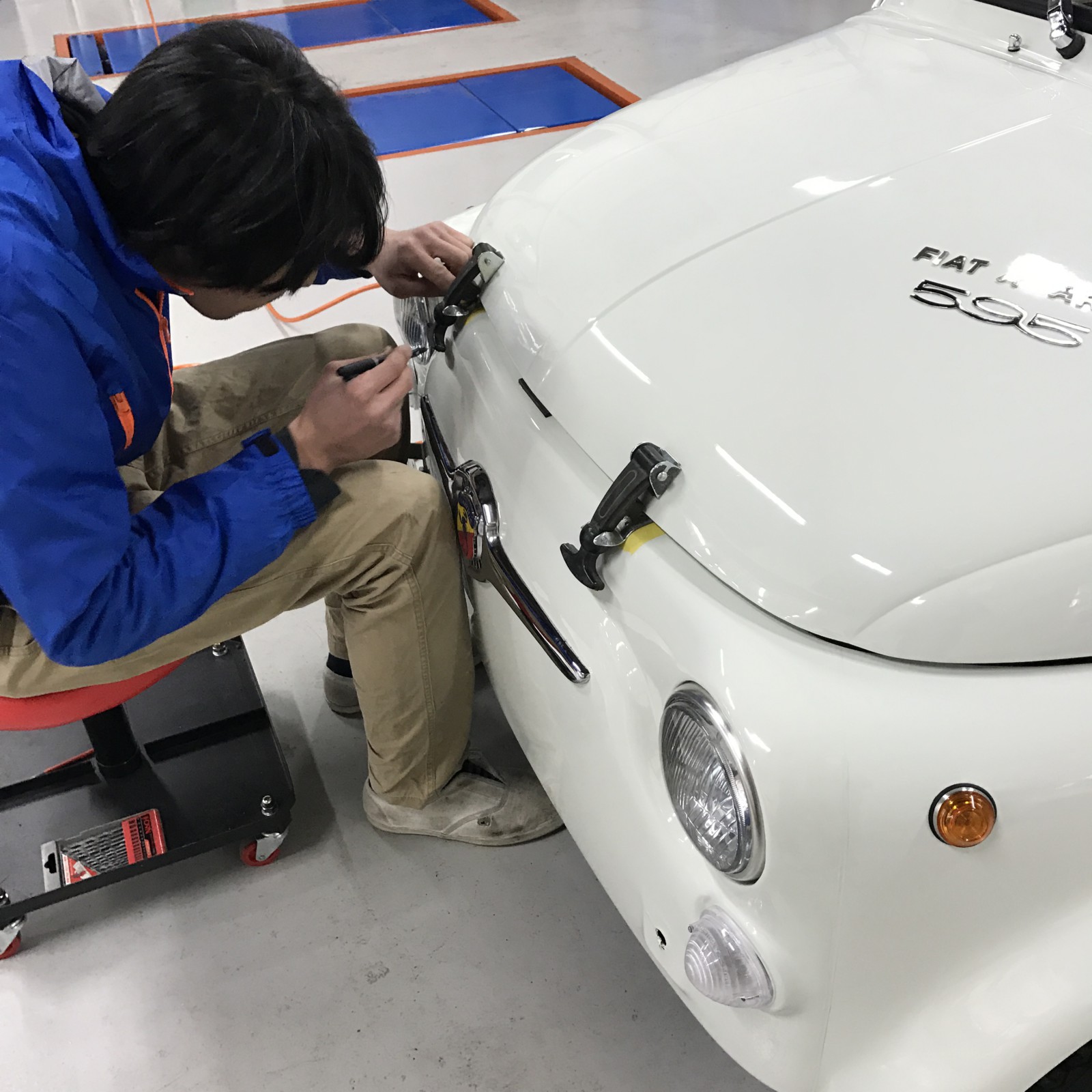 オーナーさんの依頼でバンパーレスにしてゴムフックを取り付け中