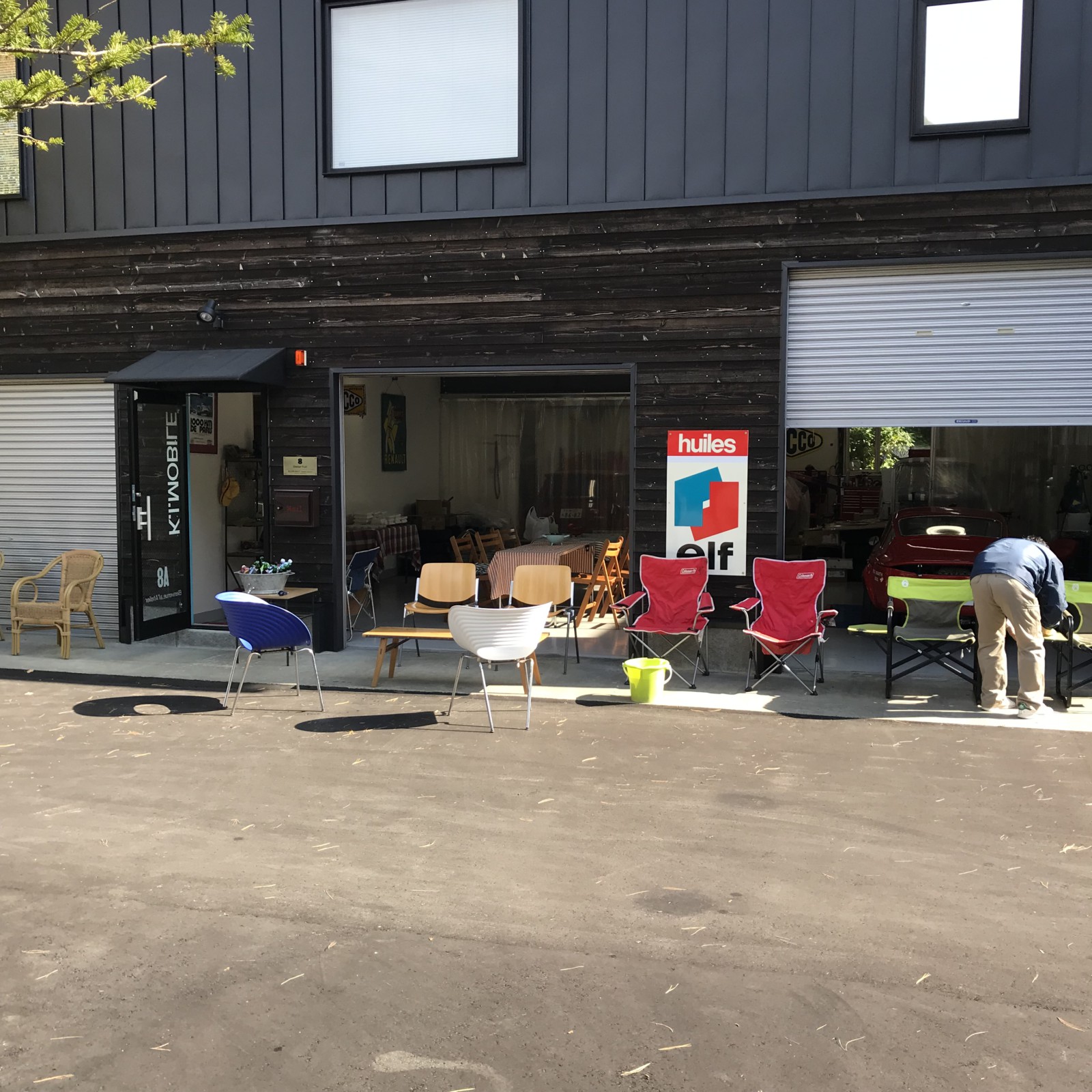 工場の中、外にテーブル・椅子を準備中~Iさんいつもお手伝い感謝!