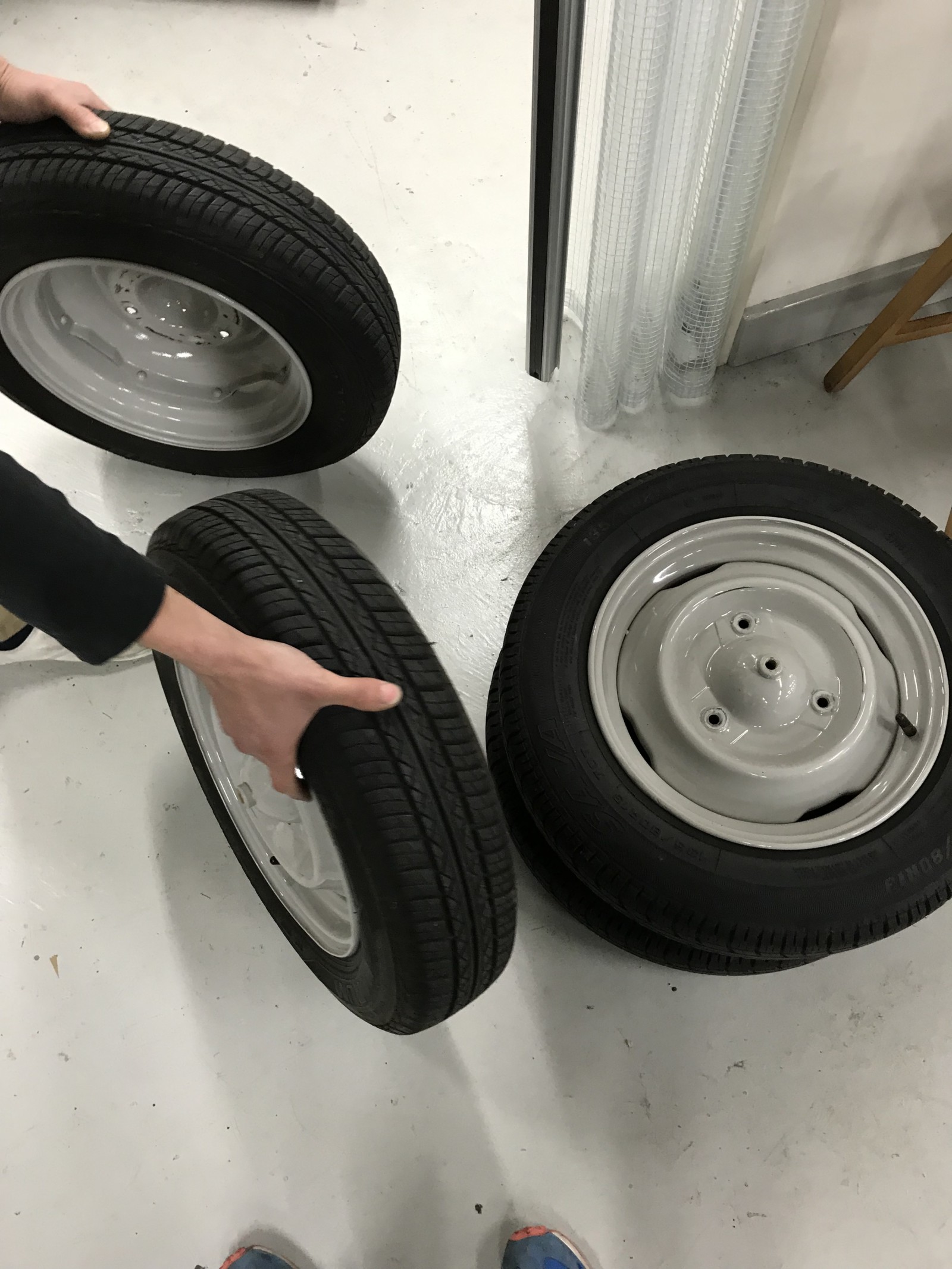 2本2本銘柄が違うし古いのでタイヤを交換です。