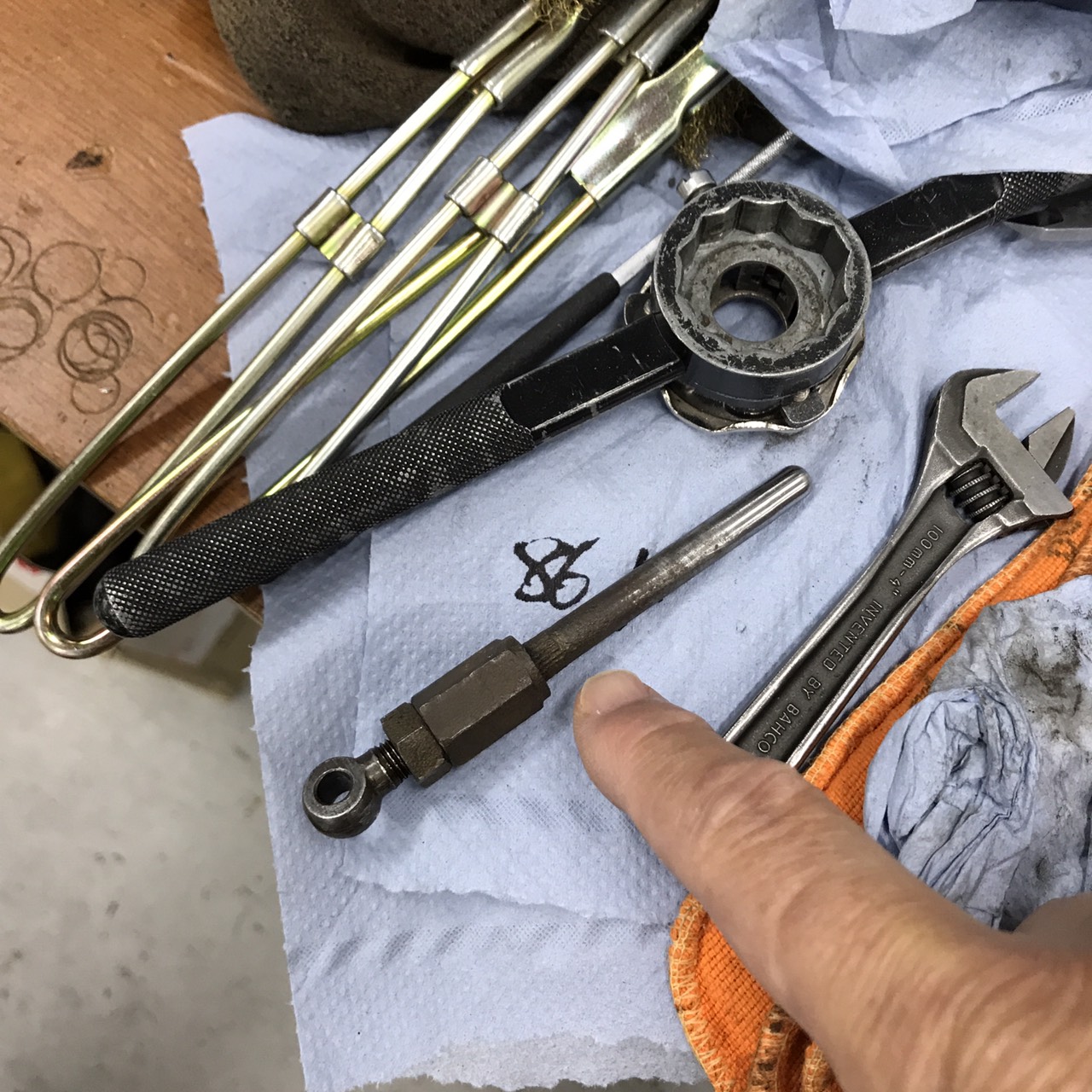 作業完了ですがマスターシリンダーのプッシュロッドを加工中~