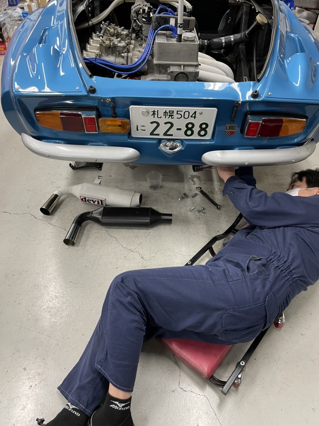 30年、いや40年選手かもしれないデビルマフラーは度重なるブラストで薄くなり