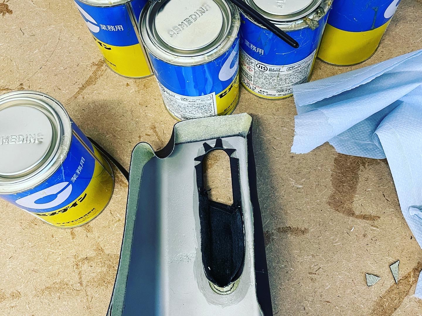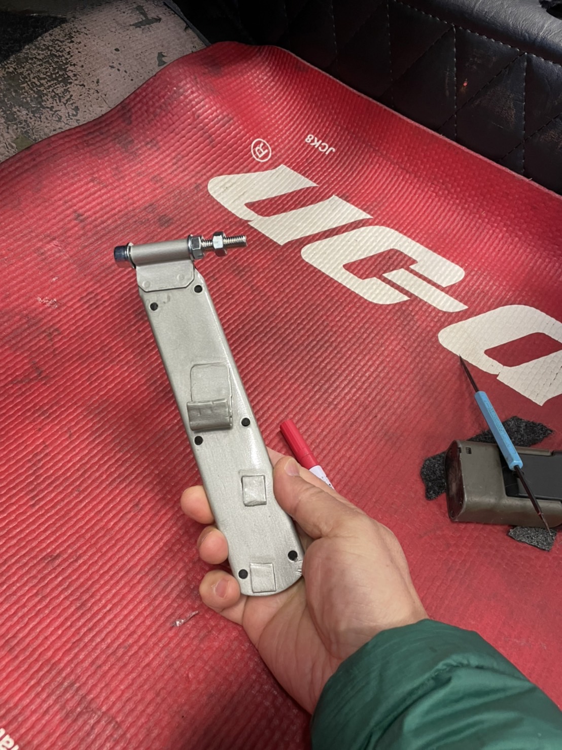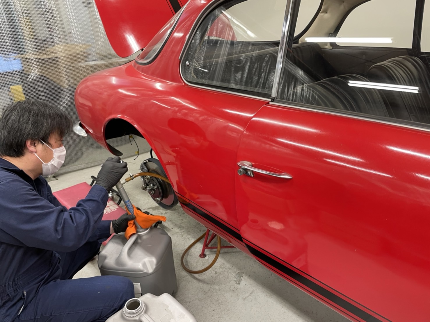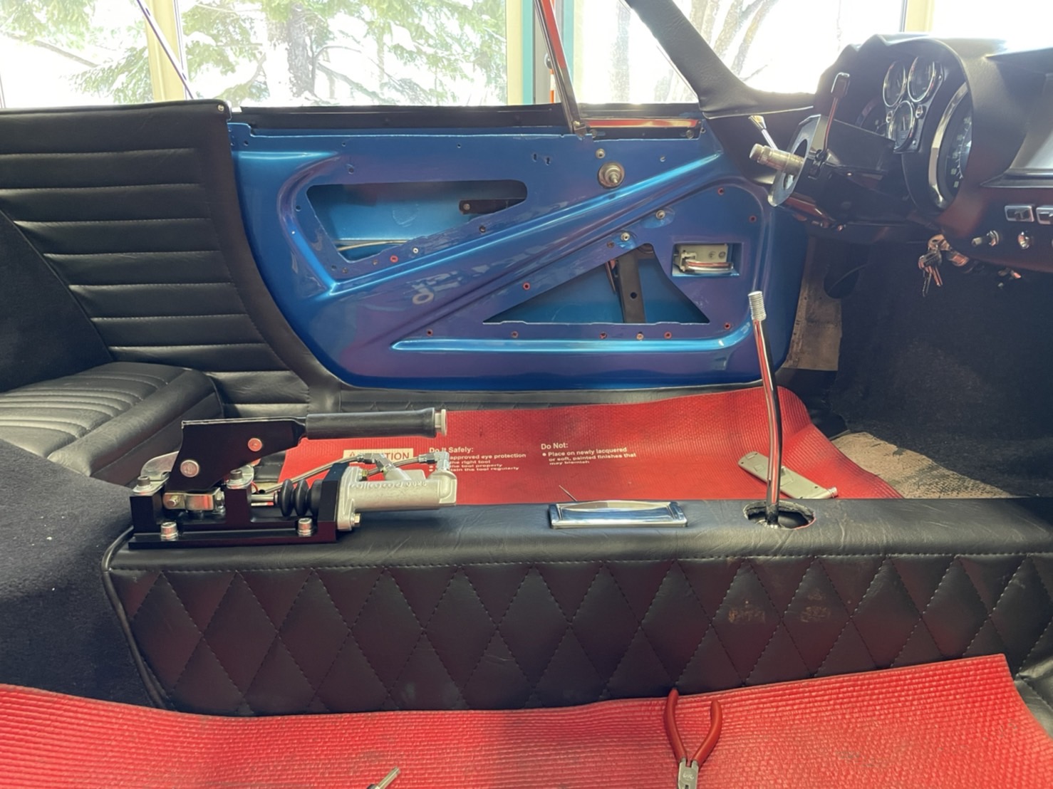 後期モデルなので灰皿はこのメッキタイプになります。油圧のサイドブレーキはノンオリジナル