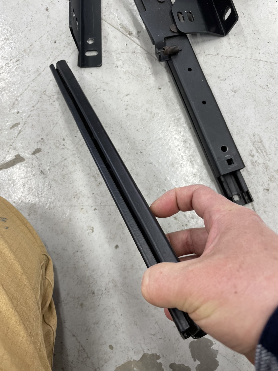 レール本体がガタガタです、また片側しか引っ掛からないので交換となります。