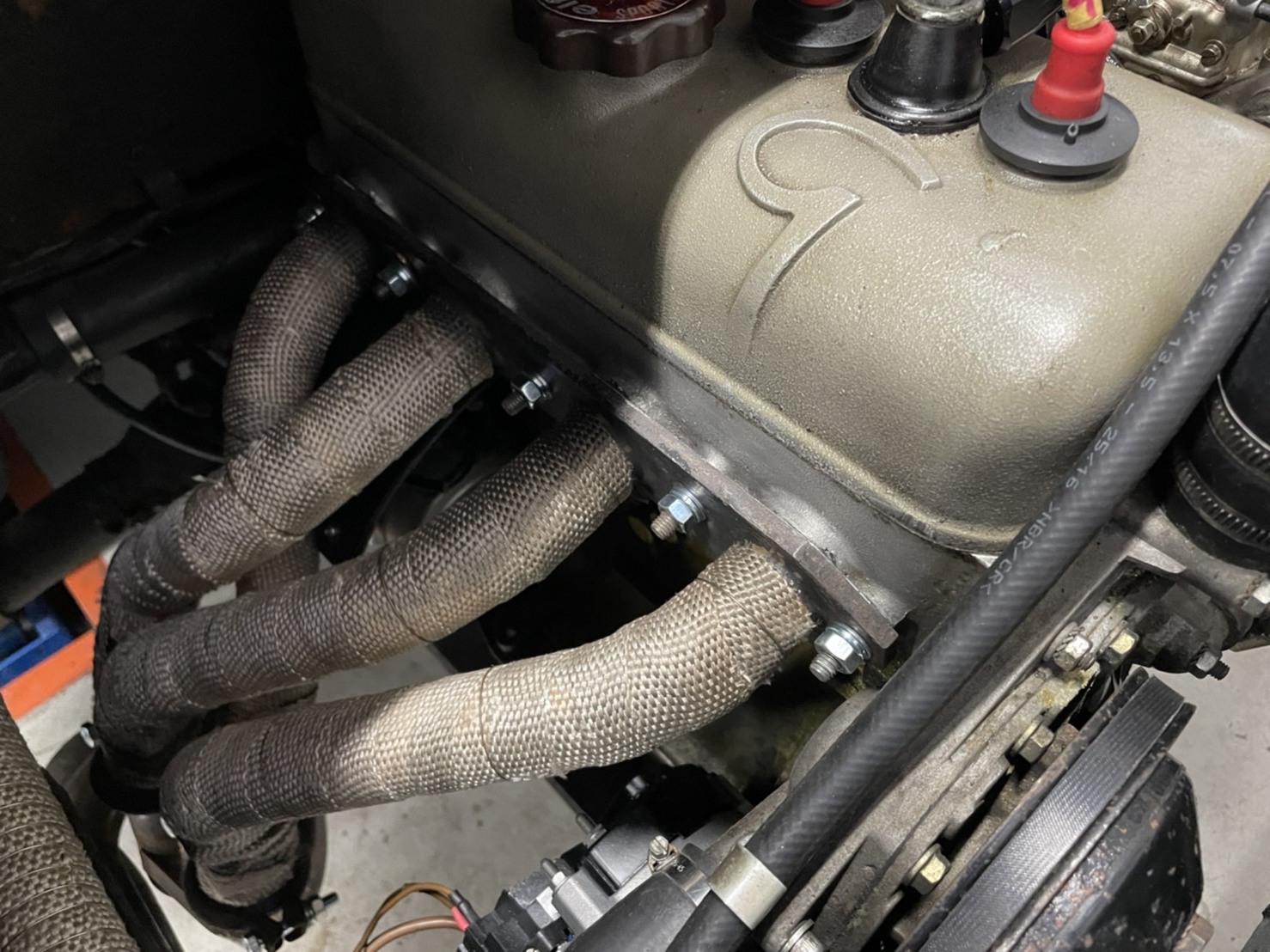 これは出発前のショットですがエキマニ排気漏れがあり脱着し面出ししてガスケットを交換しました。