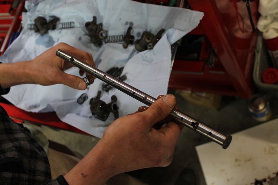 ロッカーアームを外し点検したところオイル通路が詰まっており