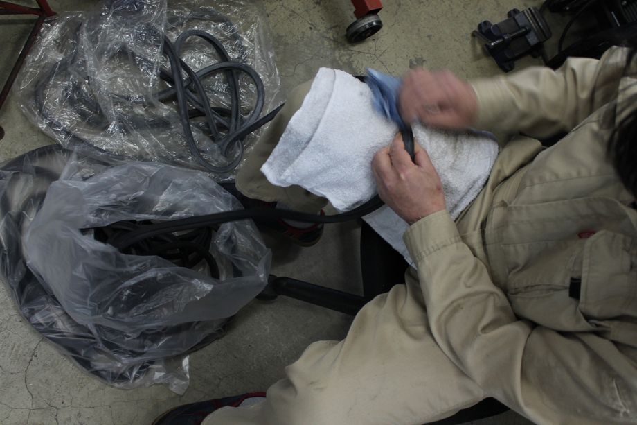 離型剤がたっぷり付着しているのでこのまま取り付けすると接着剤が効きません。