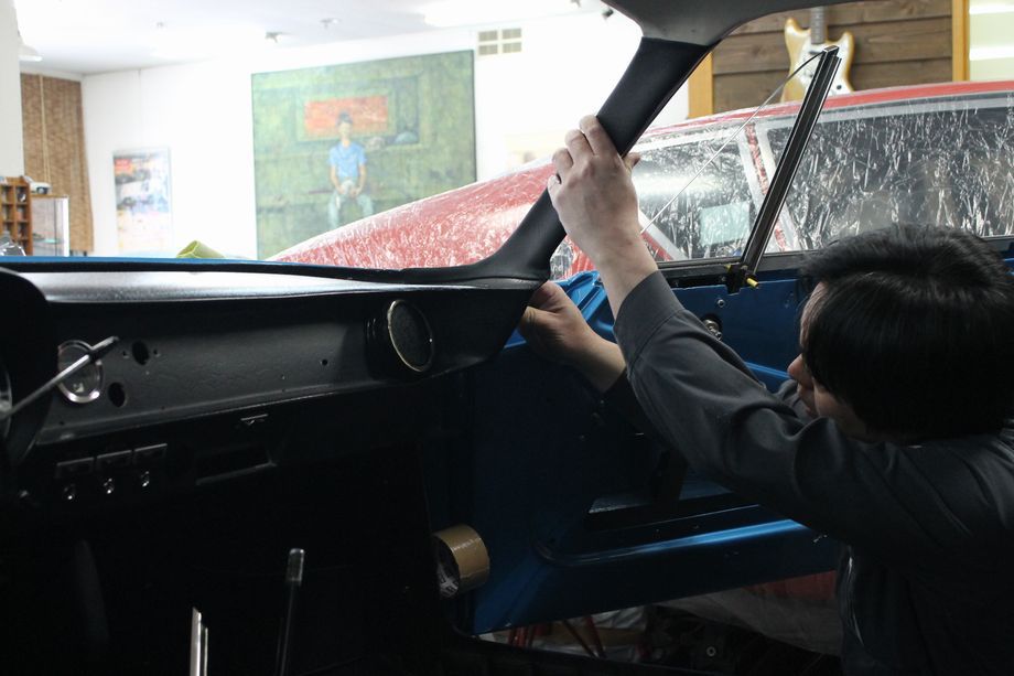 Aピラーからの雨トイ?のモールの取り付け~