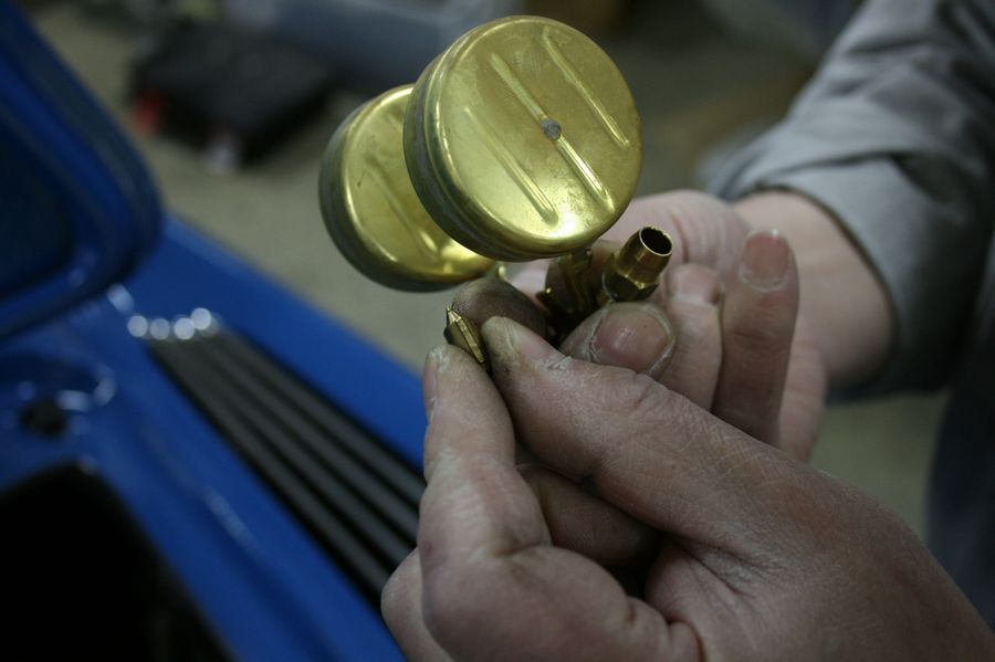 手前のキャブがオーバーフローしていました。
