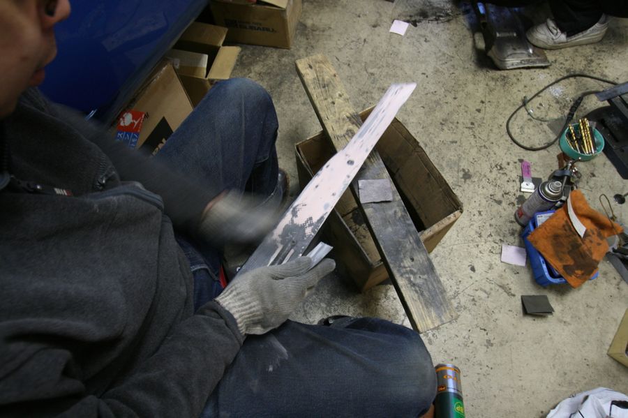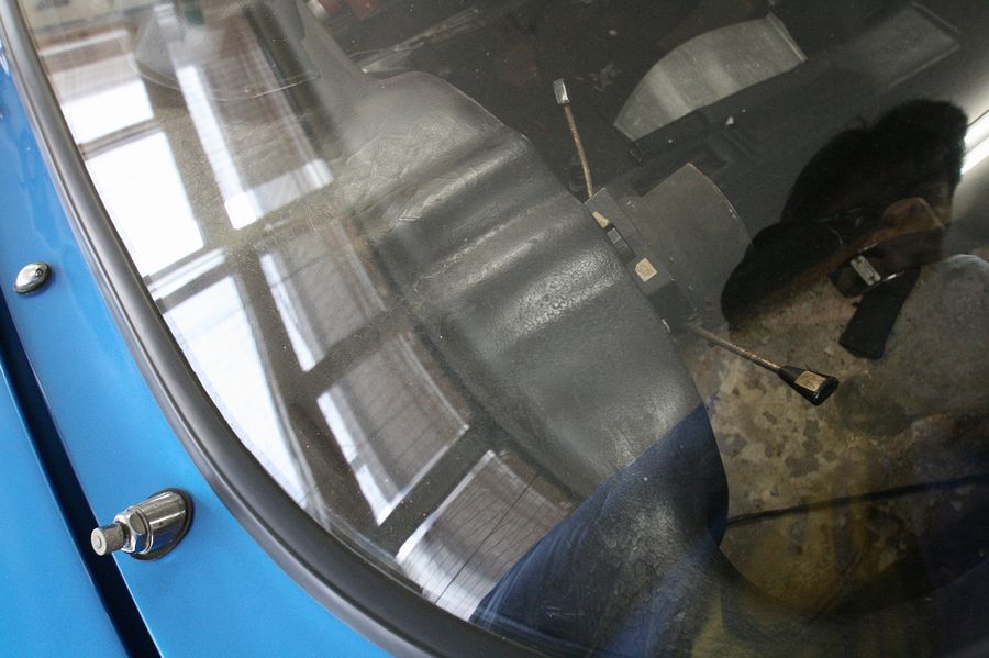 フロントウィンドウを外し、塗装を剥離してからクラック塗装