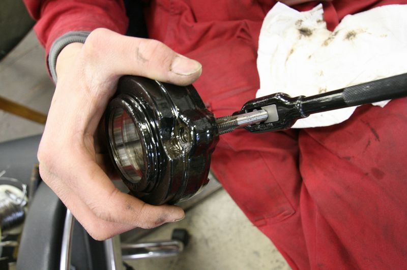 アバルトのエンジンフードステーはボディに接合する面が錆びっぽいので