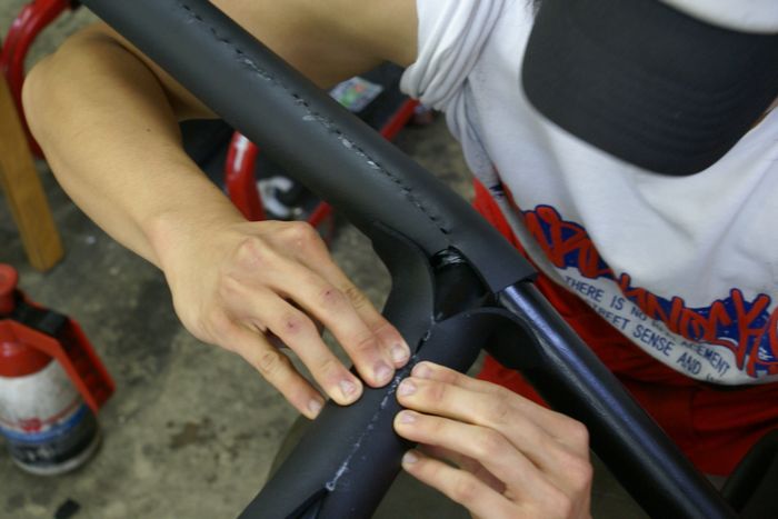 チマチマと接着剤で固定します。これを専用のテープを貼りますと