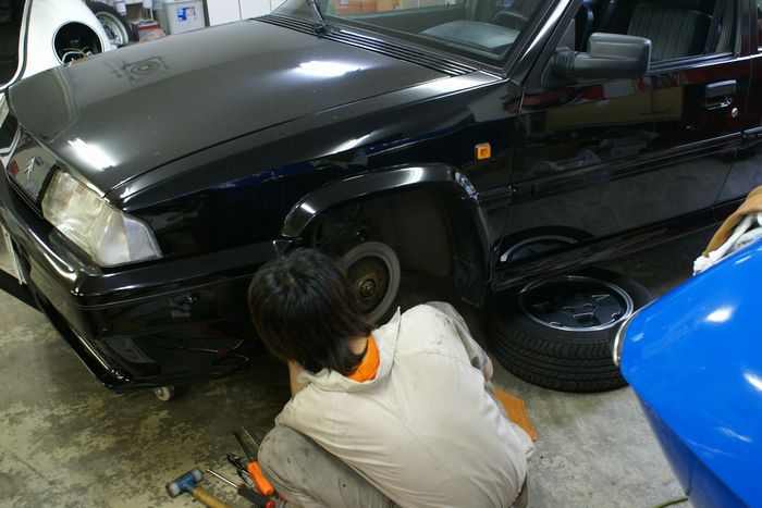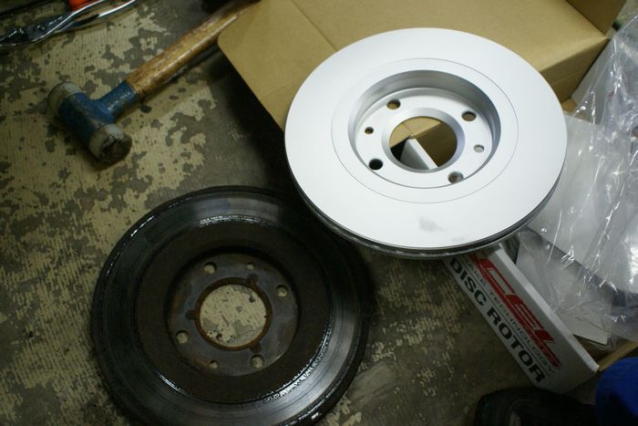 BXは部品が来たので、早速、ブレーキローター&パット交換です。