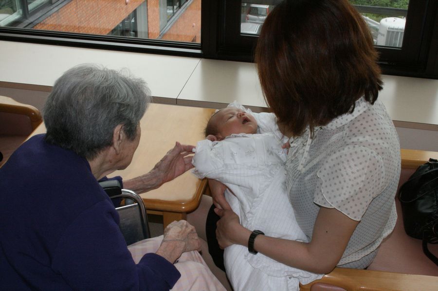 ささ、孫よ、長寿のばぁちゃんのパワーを少しもらいましょう♪
