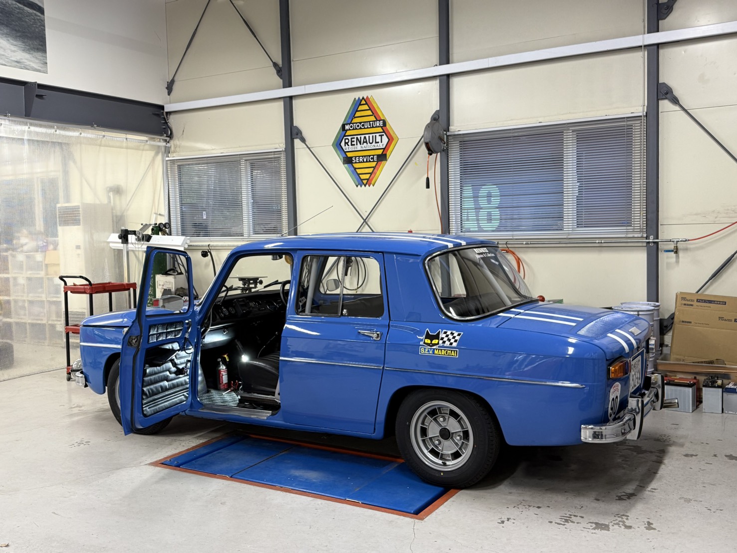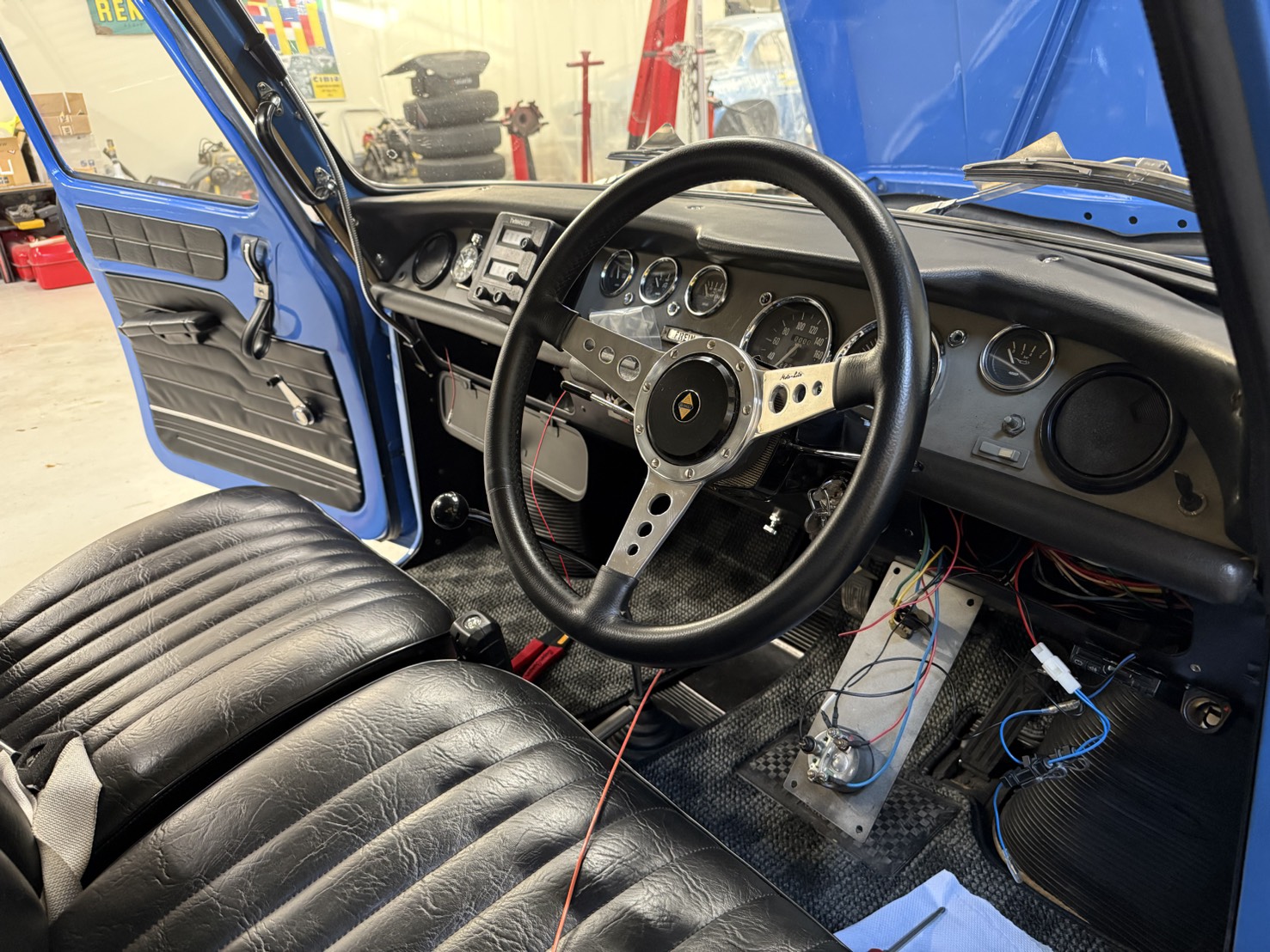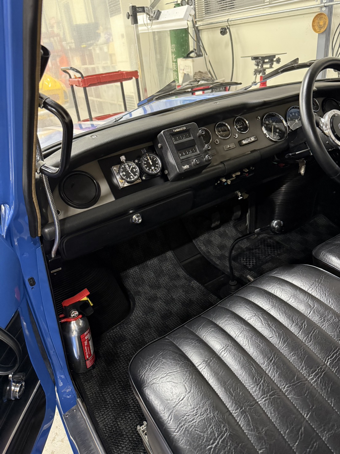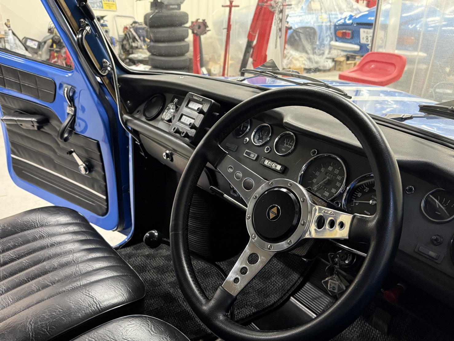 この個体はロールバーも付きモトリタの革巻きステアリングにロナールアルミと