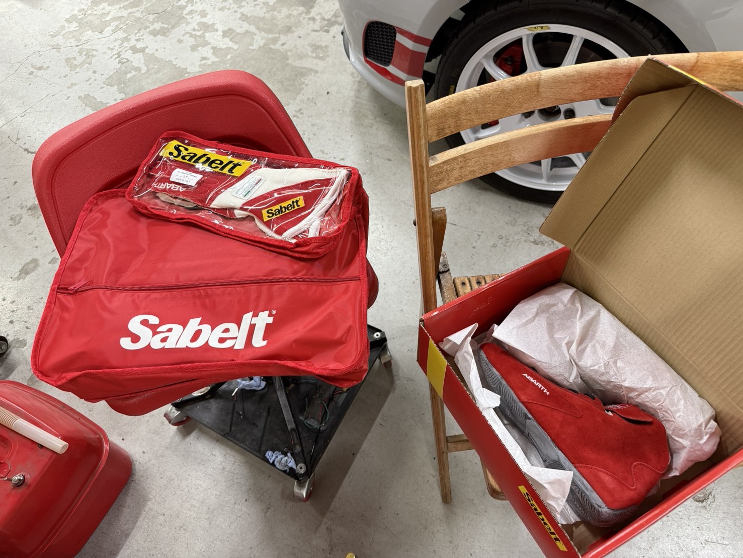 中にはレーシングスーツ、グローブ、シューズが入っています。