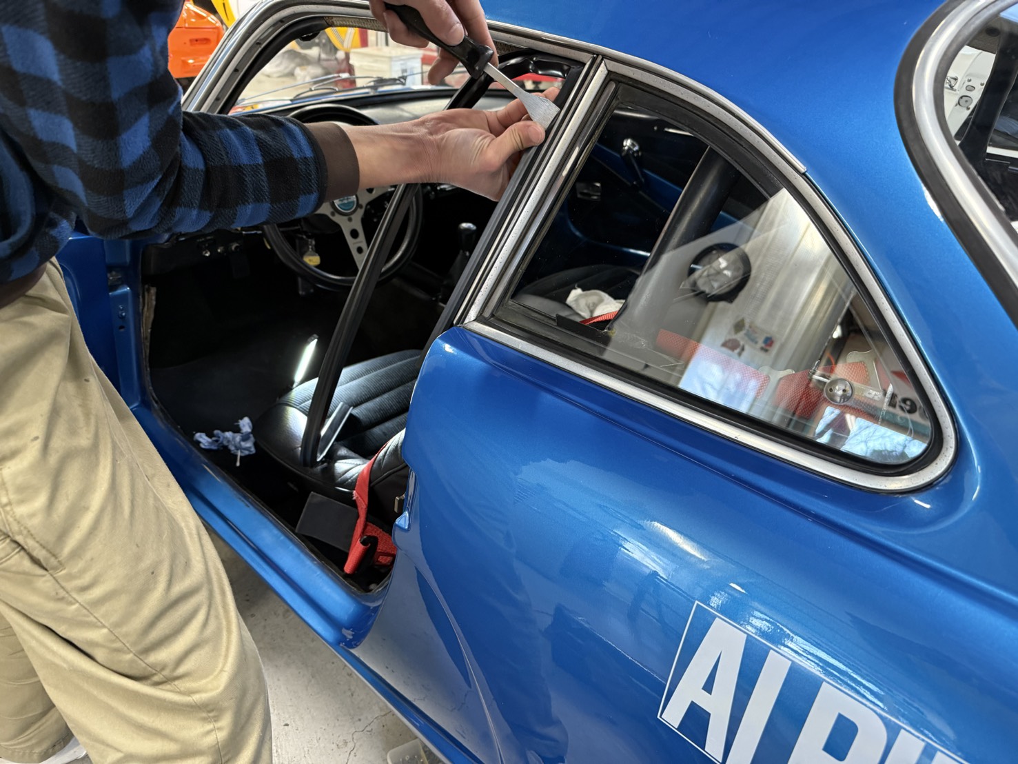ドアゴム交換の際、カーペット生地も挟み込みますので剥がれを修理しています。