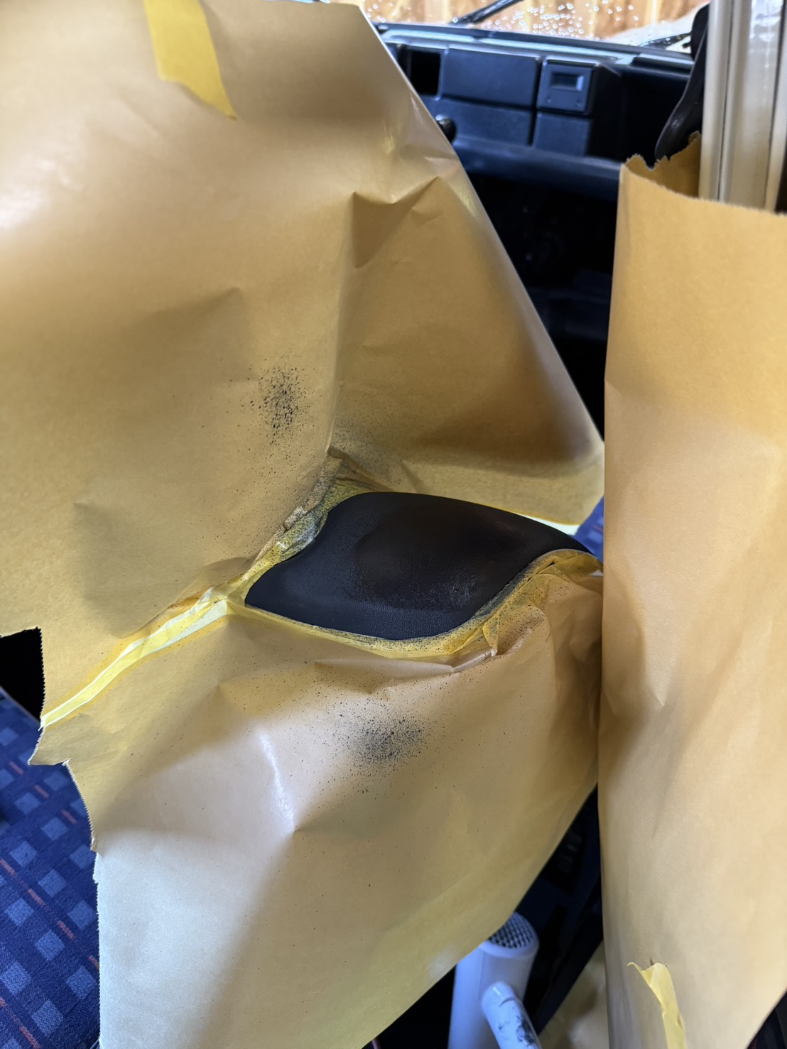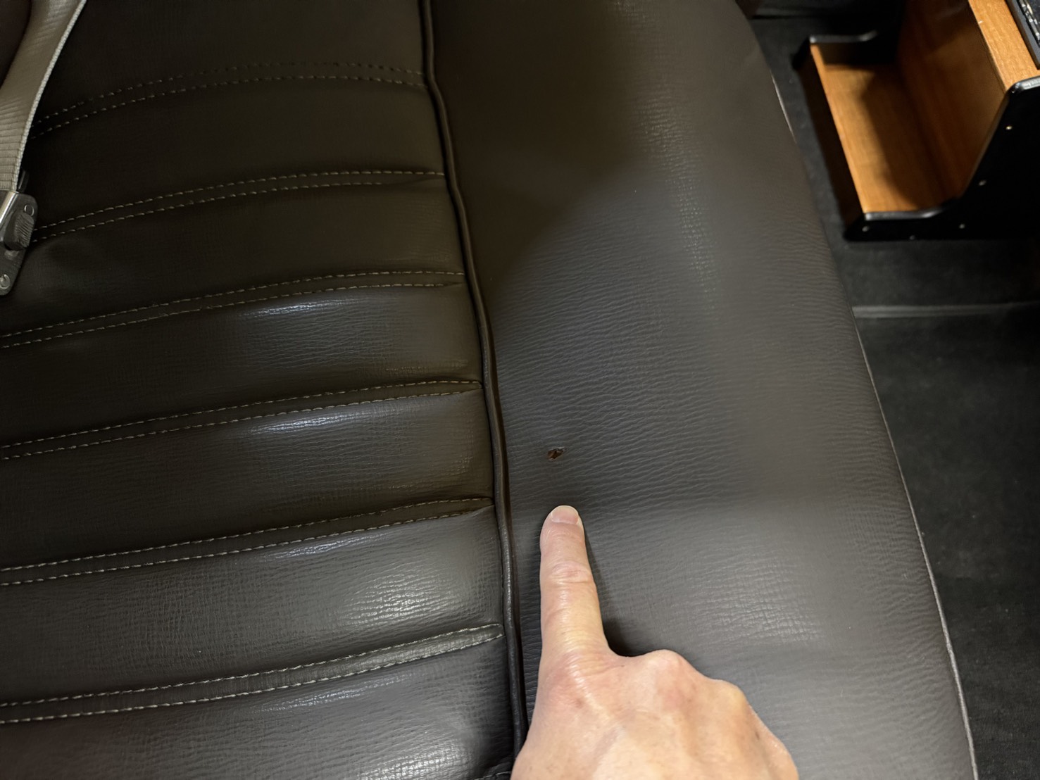 シートに小さいコゲ穴あり~他がダメージ無いのでリペアしてもらいました。