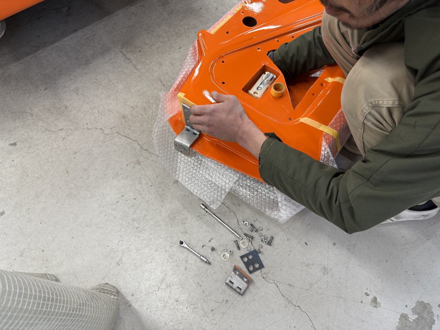 ドアヒンジが塗られていなかったので塗装屋さんにヒンジだけPしてもらいます。