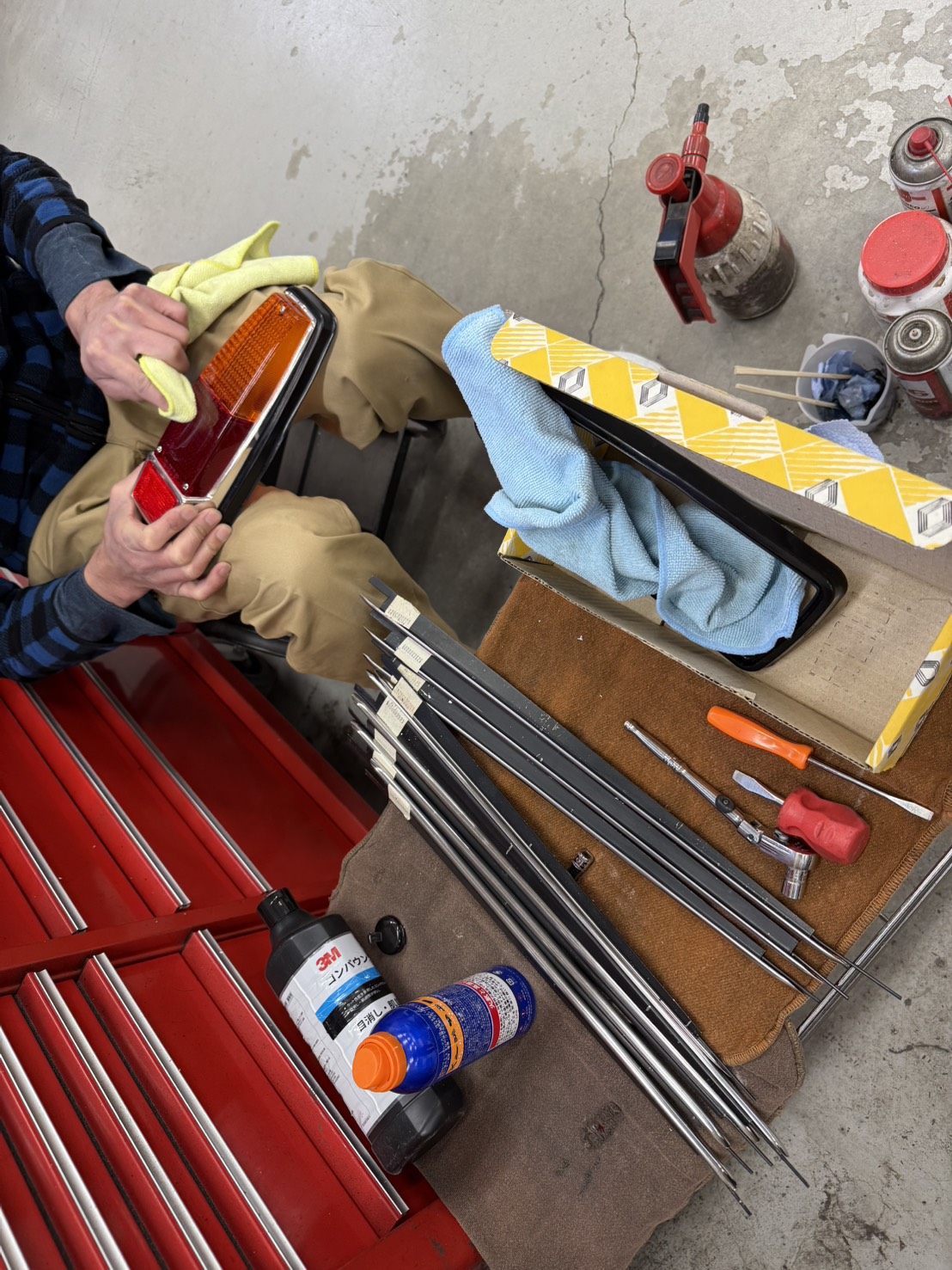 テールレンズは新品ですが長期保管部品なので磨いてから