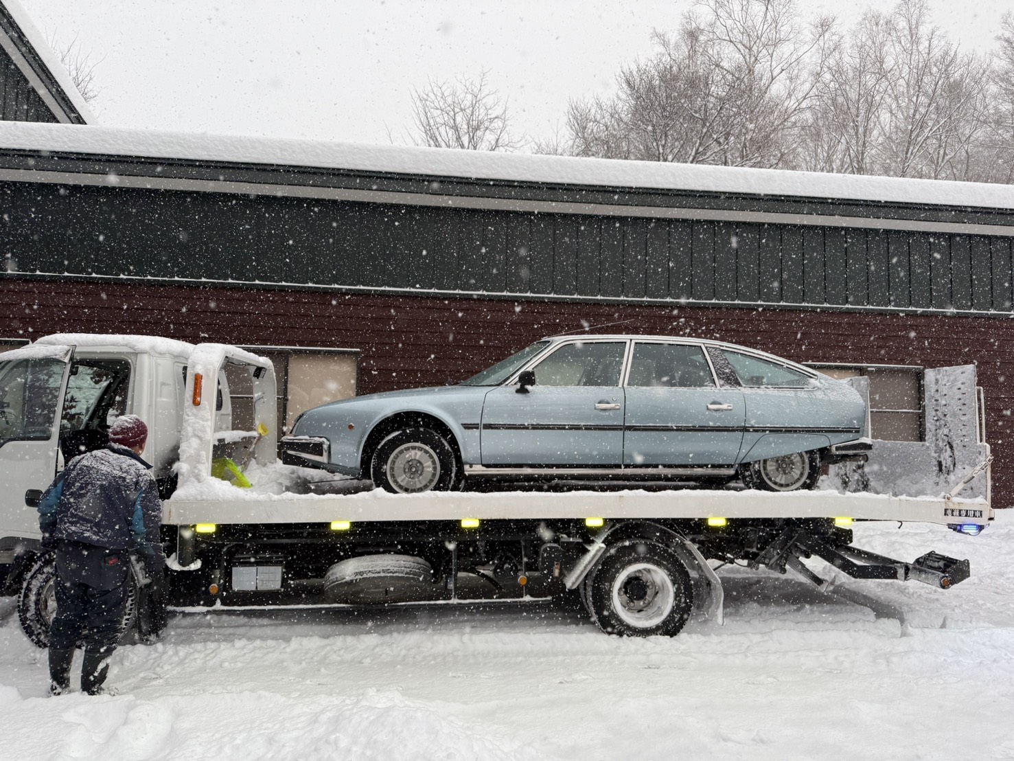 CXが出発するので積車が登れるようにしっかり除雪して準備OK