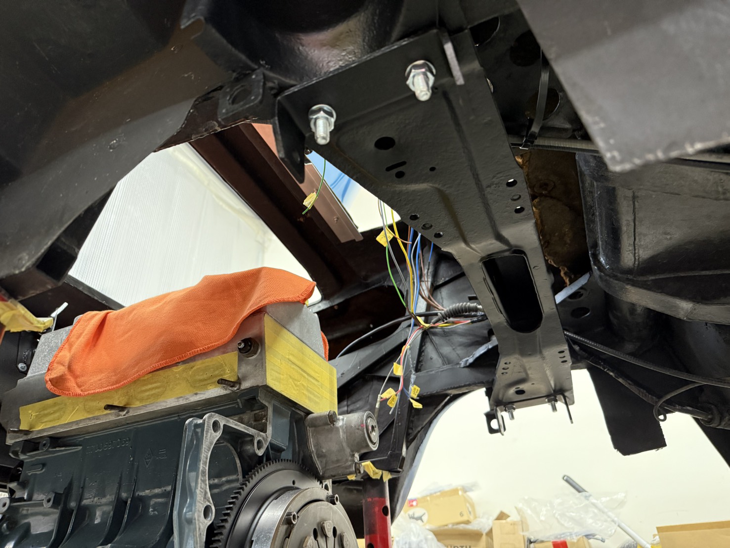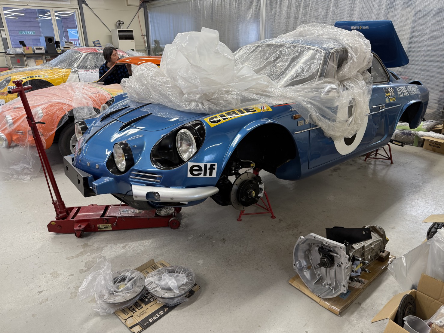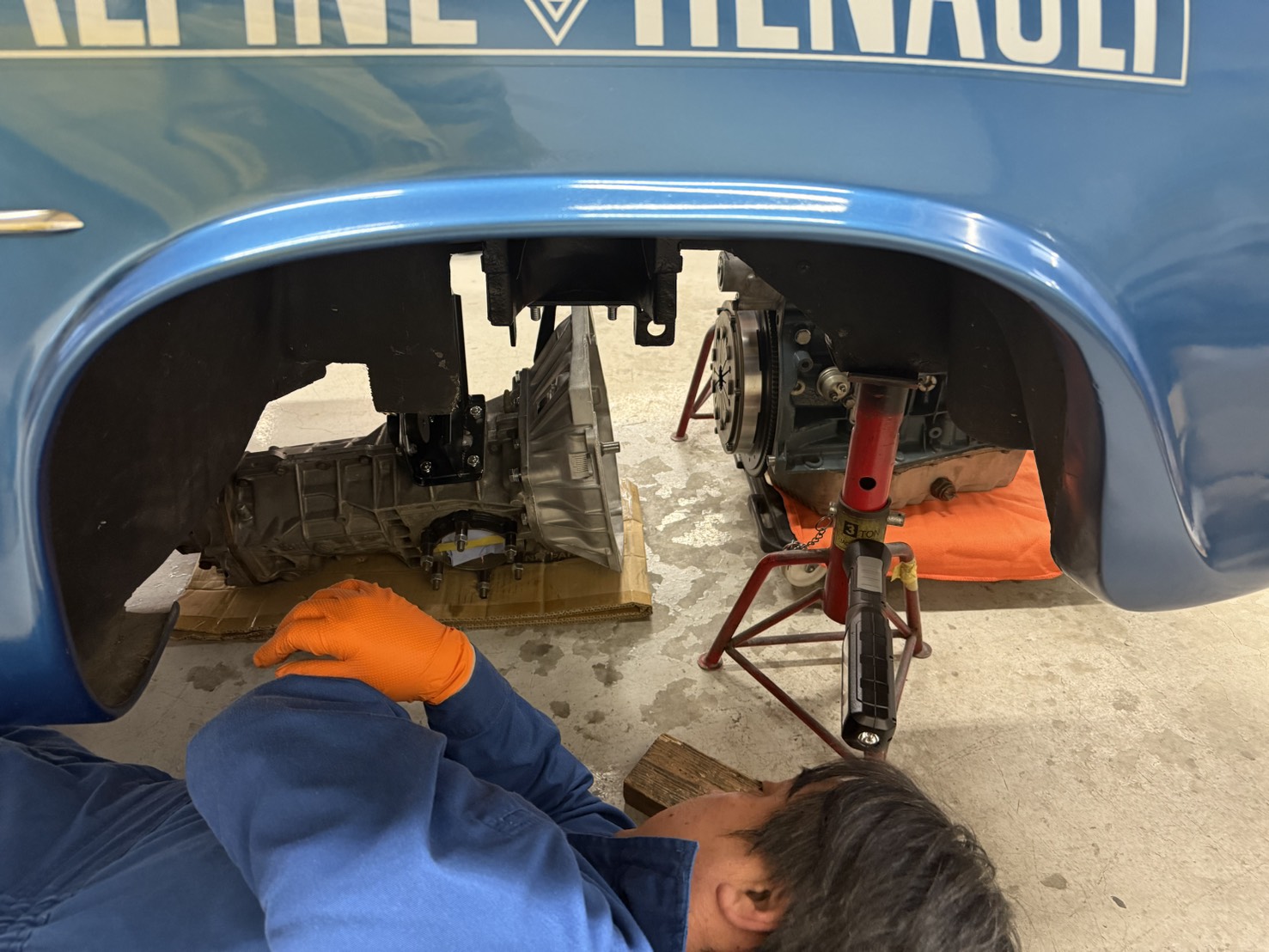 下準備が永遠と続いていましたがエンジン、ミッションを載せる段取り中~