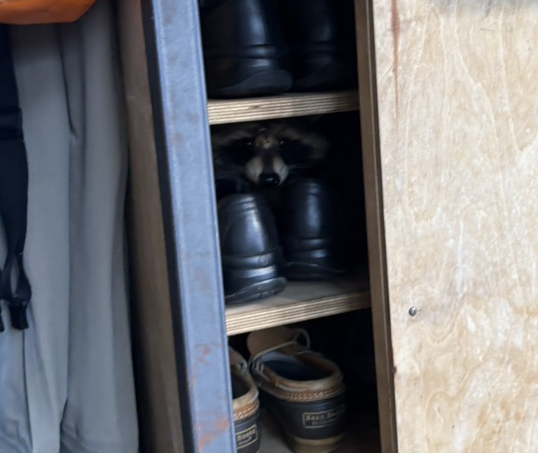アライグマが下駄箱にいました(;’∀’)