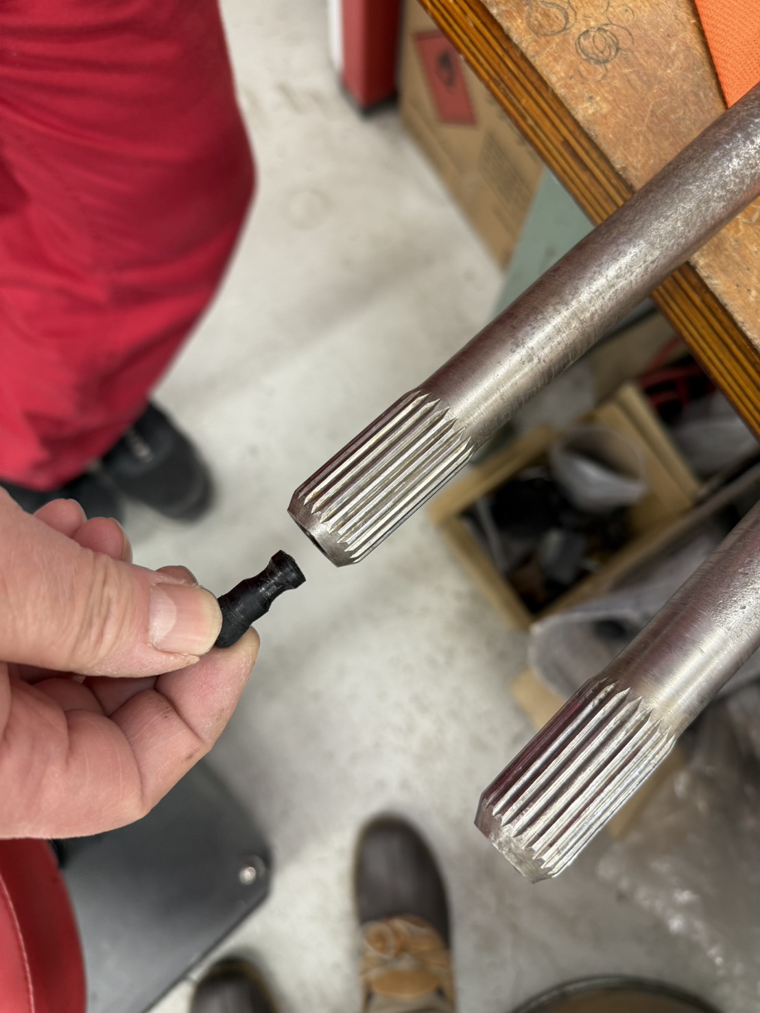 ユニバーサルジョイントを抑えるブッシュが1個ありません。