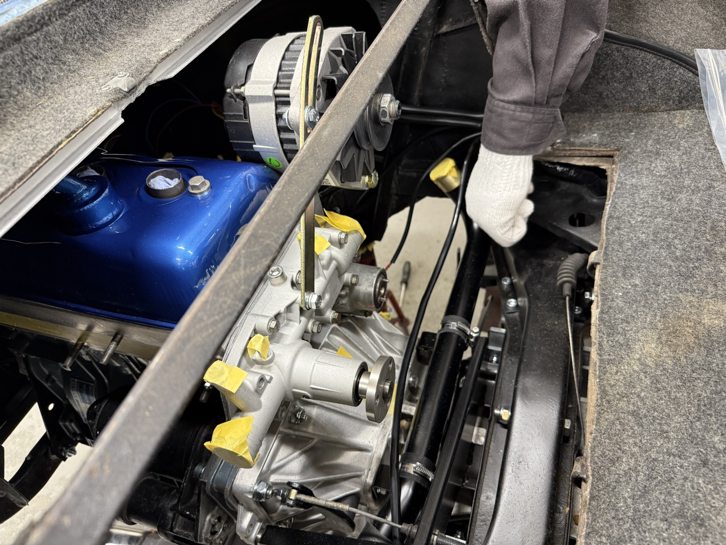 右ノーマルのラジエターサブタンクはオイルキャッチタンクとして取り付けています。