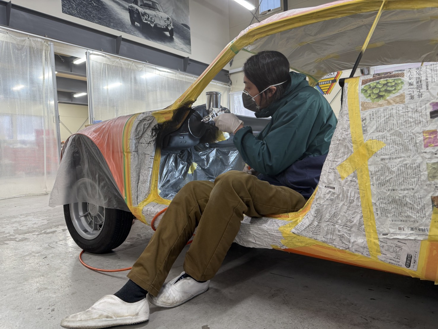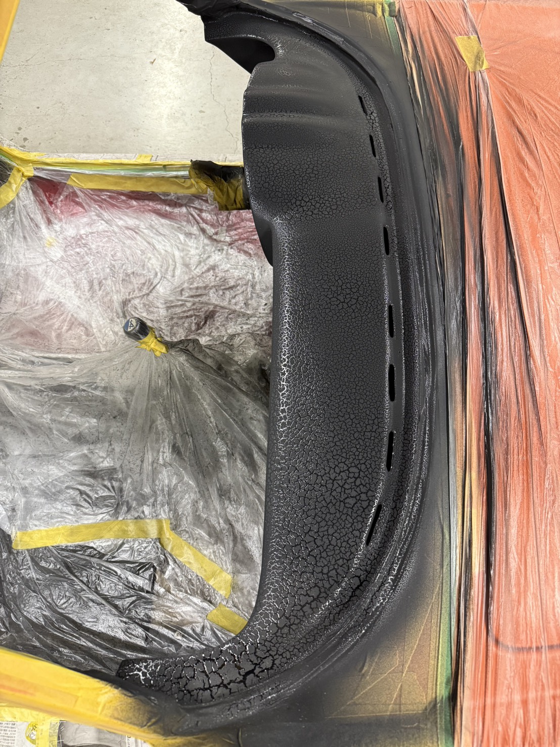 ヒビ割れたところはアンダーコートが覗き光っていますがこの上に仕上げ塗装をすると