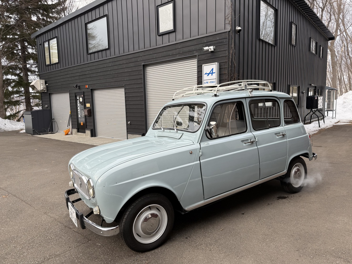まだ敷地からの坂道に雪があるので走行はもうちょい先です。