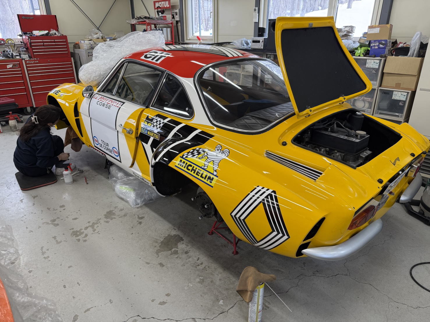 エンジンルームやホイールハウスの洗浄中です。