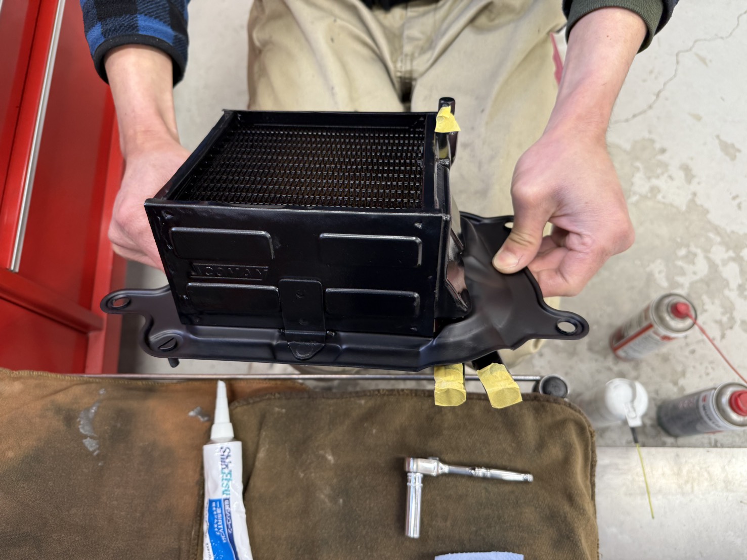 ヒーターコアのベースはブラストして塗装します。