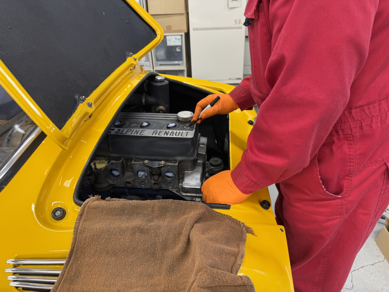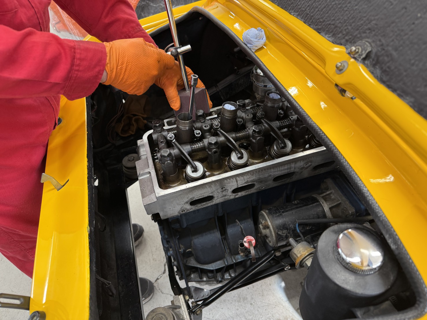 タペットカバーを外し各調整をしています。